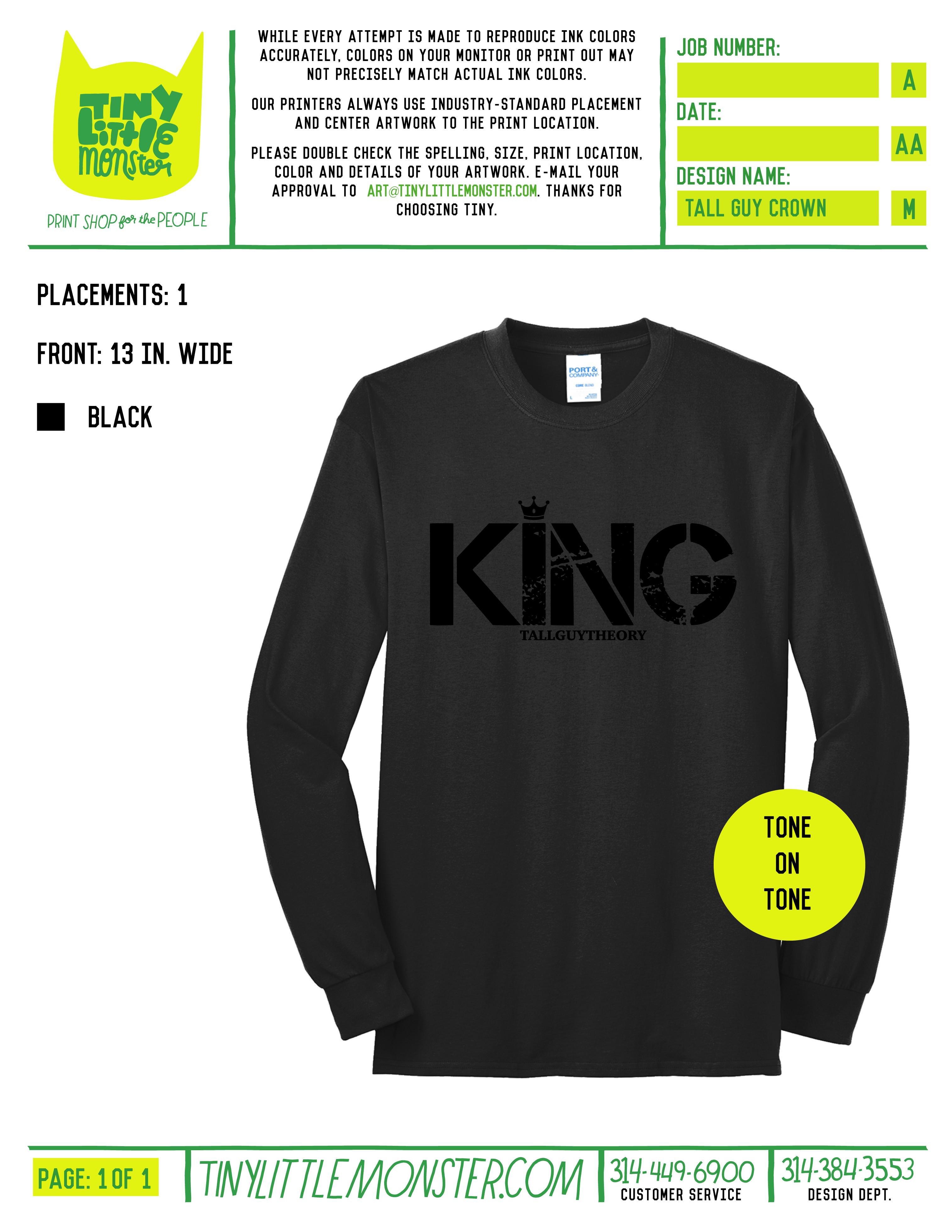 Tiny Little Monster is not responsible for errors in printing done in accordance with proofs returned with customer approval or proofs returned without indication of changes to be made.